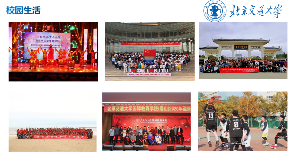 北京交通大學國際教育學院(唐山)位于唐山市中心城區的“黃金片區”,交通便利,周邊商業發達。校園總占地371畝,總建筑面積23.5萬平方米。學校硬件設施先進,教學條件優越,行政辦公樓、教學樓、逸夫圖書館、學生食堂以及環境舒適、條件一流的宿舍樓等基礎設施齊全,為學生創造了國際化的學習氛圍和優美的生活環境,學生可以與校內來華留學生一起學習交流,共同開展社團及文體活動,提升跨文化交際能力。