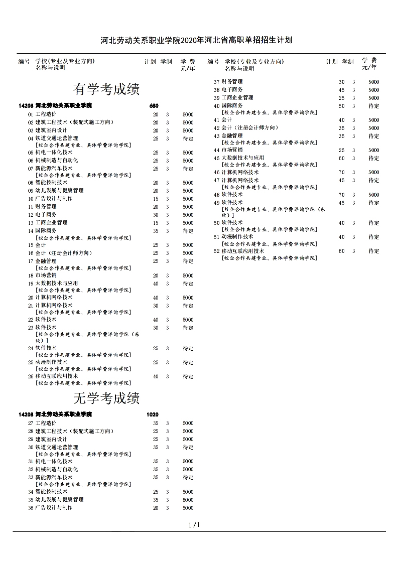 河北勞動關系職業學院2022年河北省高職單招招生計劃